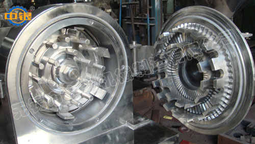 萬能粉碎機(jī)利用活動(dòng)齒盤和固定齒盤見的高速相對運(yùn)動(dòng),使被粉碎物經(jīng)齒沖擊,摩擦及物料彼此間沖擊等綜合作用獲得粉碎。本機(jī)結(jié)構(gòu)簡單、堅(jiān)固、運(yùn)轉(zhuǎn)平穩(wěn)、粉碎效果良好,被粉碎物可直接由主機(jī)磨腔中排出、粒度大小通過更換不同孔徑的網(wǎng)篩獲得,另外該機(jī)為全不銹鋼。機(jī)殼內(nèi)壁全部經(jīng)機(jī)加工達(dá)到表面平滑,改變了以前機(jī)型內(nèi)壁粗糙、積粉的現(xiàn)象,使藥品、食品、化工等生產(chǎn)更符合國家標(biāo)準(zhǔn),達(dá)到GMP的要求。